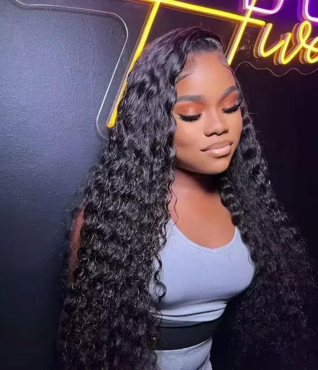 Cabello humano ondulado profundo con frente de encaje transparente 13x4