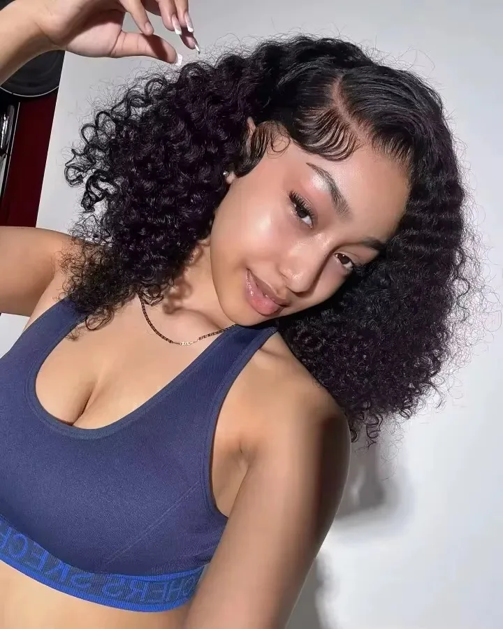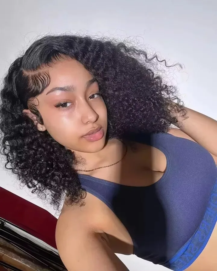 Perruque en cheveux humains bouclés Jerry avec dentelle frontale transparente 13x4