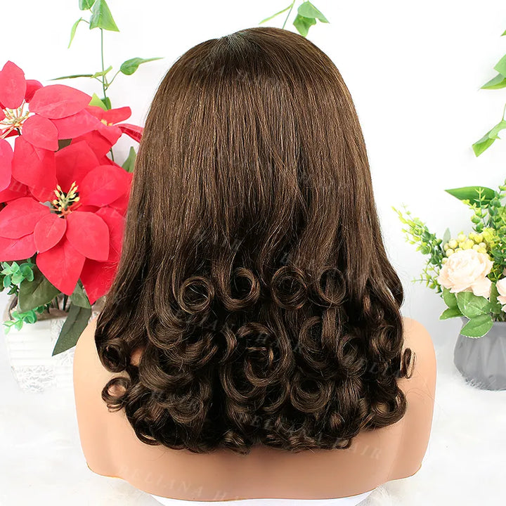 Perruque lace front transparente Pear Roll, cheveux brun chocolat, 33 x 10 cm, 45 cm